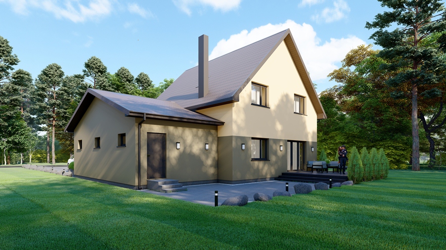 Norādītajā tipveida projekta cenā ir iekļauta būvprojekta dokumentācija, kas sevī ietver ARHITEKTŪRAS (AR) sadaļu un BŪVKONSTRUKCIJU (BK) sadaļu. Papildus tam būs nepieciešams izstrādāt ĢENERĀLPLĀNU (ĢP) jeb piesaistīt māju pie zemes gabala, kas ir individuāls pakalpojums katram pasūtījumam. Jāņem vērā arī saistītie izdevumi ar inženiertehnisko izpēti zemes gabalam (topogrāfija, ģeoloģija), iespējamie pieslēgumi centralizētajiem inženierkomunikāciju tīkliem (ELT, UKT, GAT) un citi iespējamie izdevumi, kas katrā īpašumā var būt atšķirīgi. Lai noskaidrotu saistītās izmaksas lūgums sazināties ar arhitektu - tel. 201 44 444