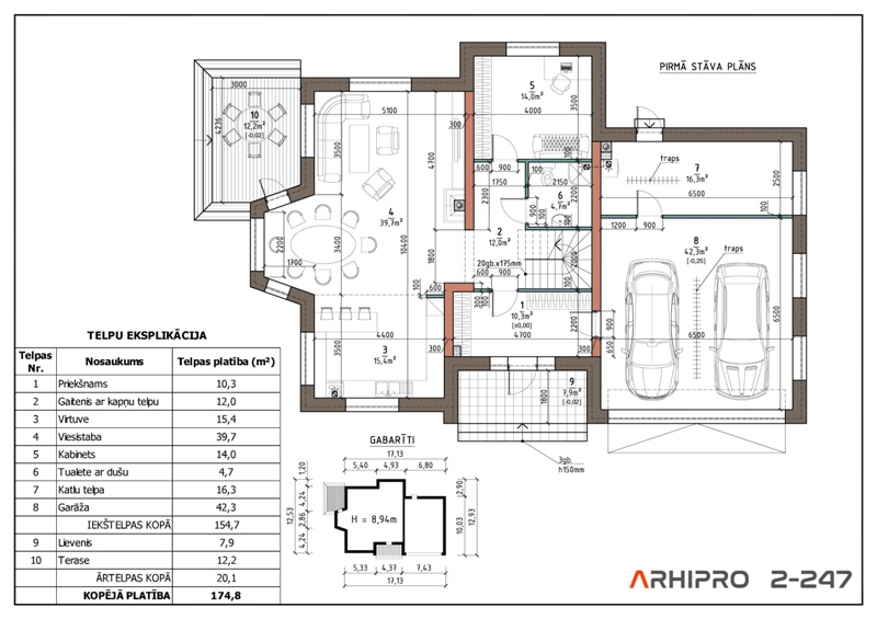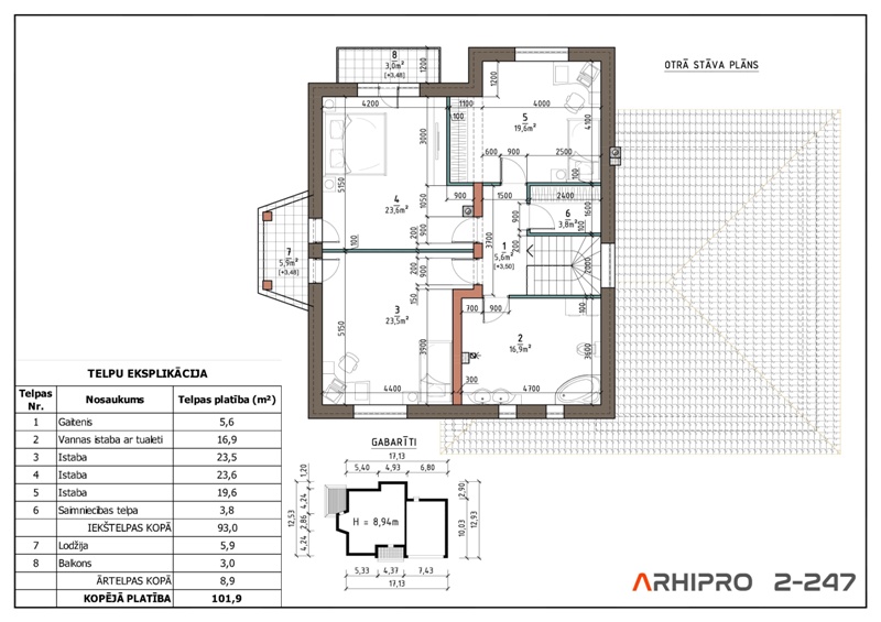Iekštelpu platība - 247,7m²