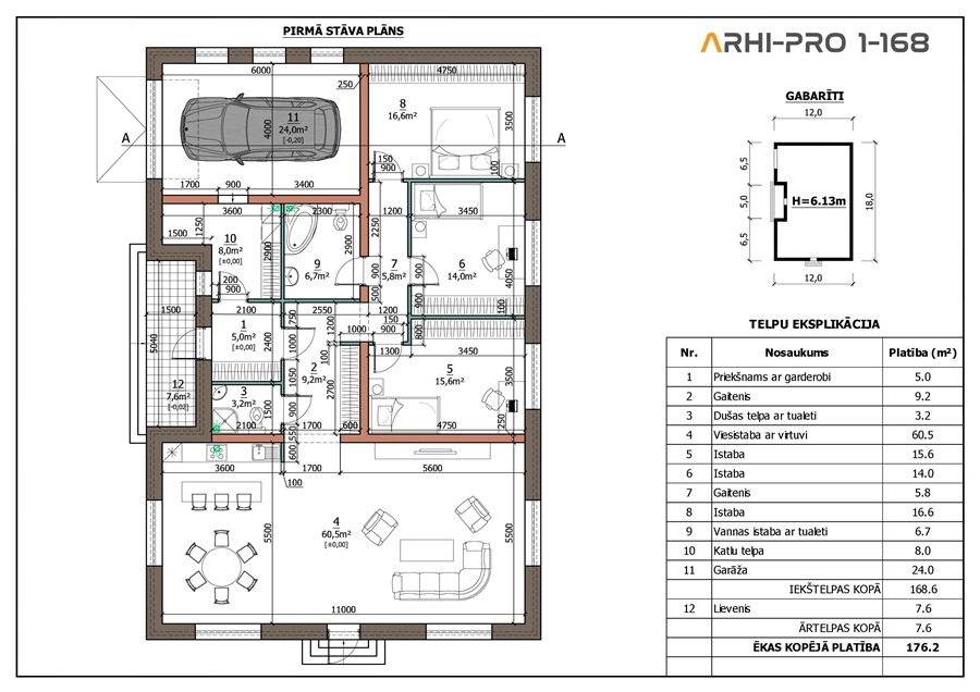Guļamistabas: 3 Platība: 168 m² Garāža: ir