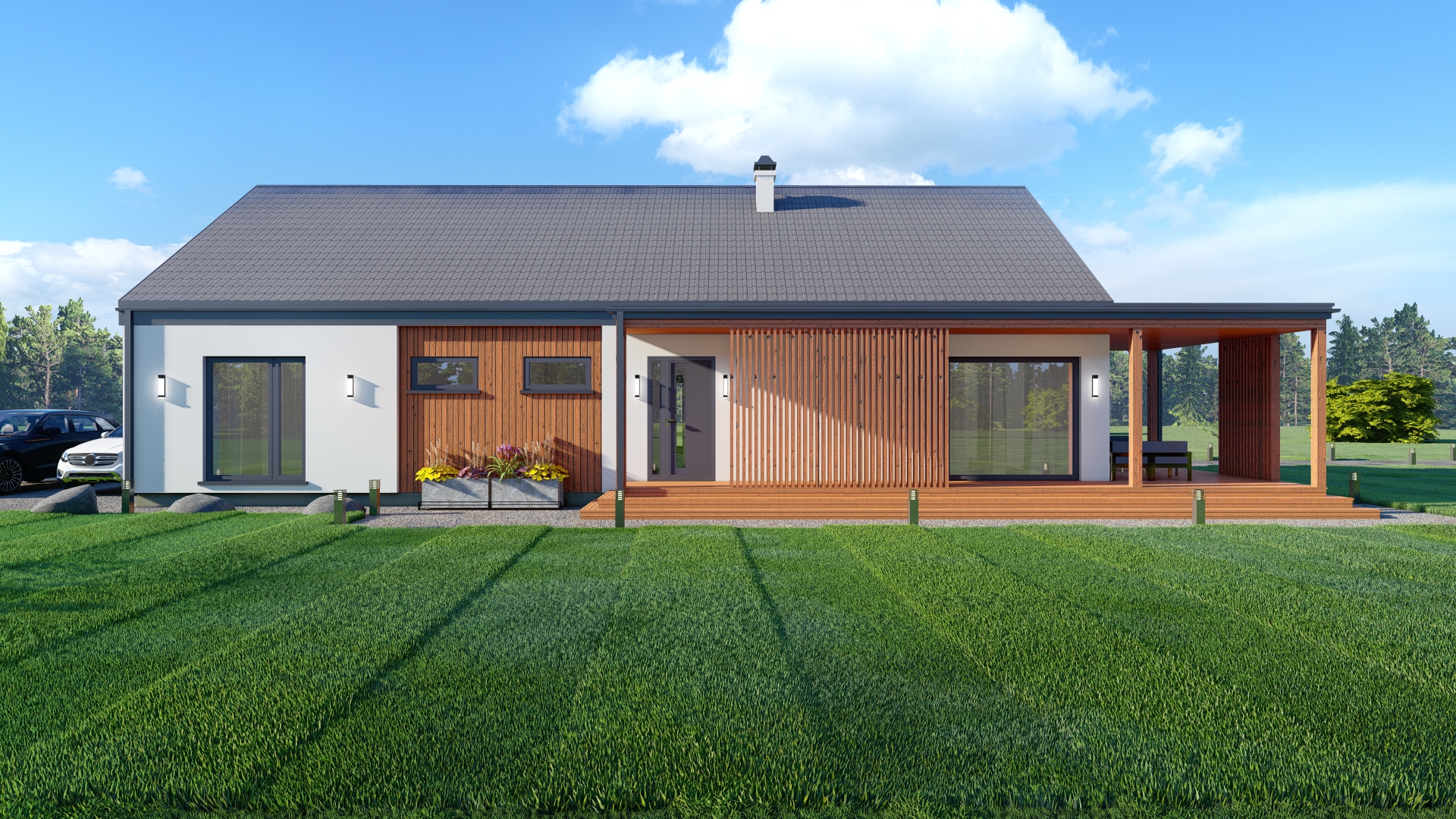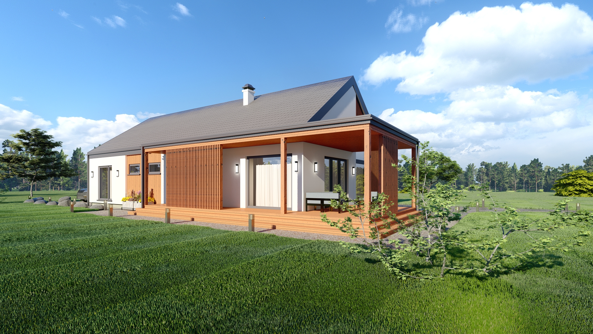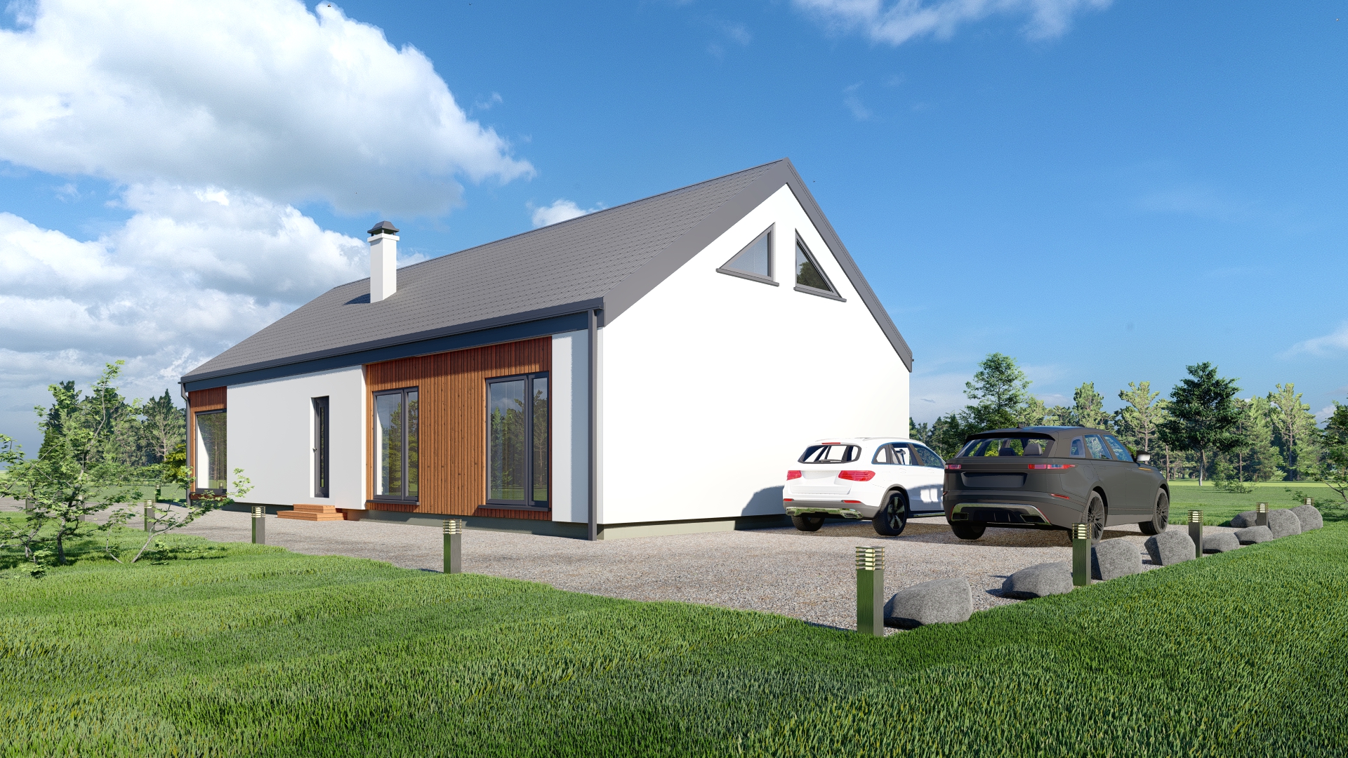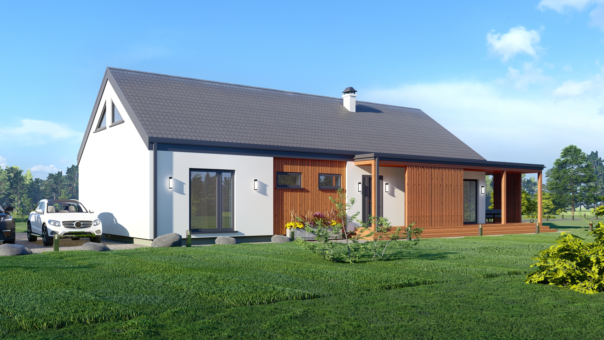 koka siju karkass, aizpildīts ar minerālvati, viesistabas zonā griesti līdz jumta konstrukcijai