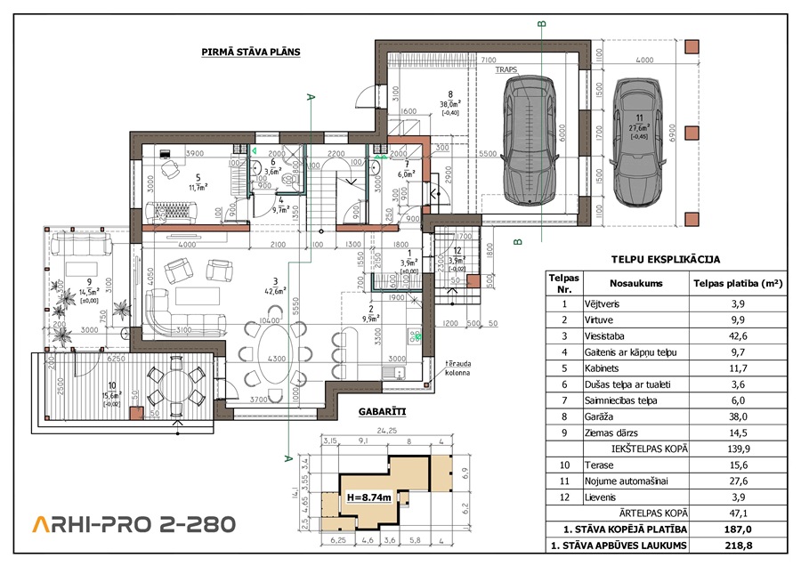 Guļamistabas: 5 Platība: 280 m² Garāža: ir