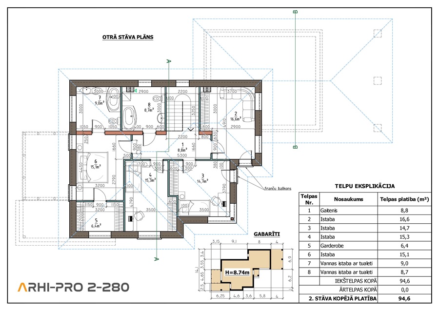 Norādītajā tipveida projekta cenā ir iekļauta būvprojekta dokumentācija, kas sevī ietver ARHITEKTŪRAS (AR) sadaļu un BŪVKONSTRUKCIJU (BK) sadaļu. Papildus tam būs nepieciešams izstrādāt ĢENERĀLPLĀNU (ĢP) jeb piesaistīt māju pie zemes gabala, kas ir individuāls pakalpojums katram pasūtījumam. Jāņem vērā arī saistītie izdevumi ar inženiertehnisko izpēti zemes gabalam (topogrāfija, ģeoloģija), iespējamie pieslēgumi centralizētajiem inženierkomunikāciju tīkliem (ELT, UKT, GAT) un citi iespējamie izdevumi, kas katrā īpašumā var būt atšķirīgi. Lai noskaidrotu saistītās izmaksas lūgums sazināties ar arhitektu - tel. 201 44 444