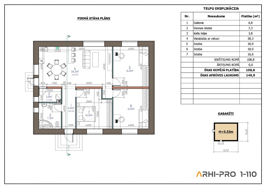 Guļamistabas: 3 Platība: 110 m² Garāža: nav