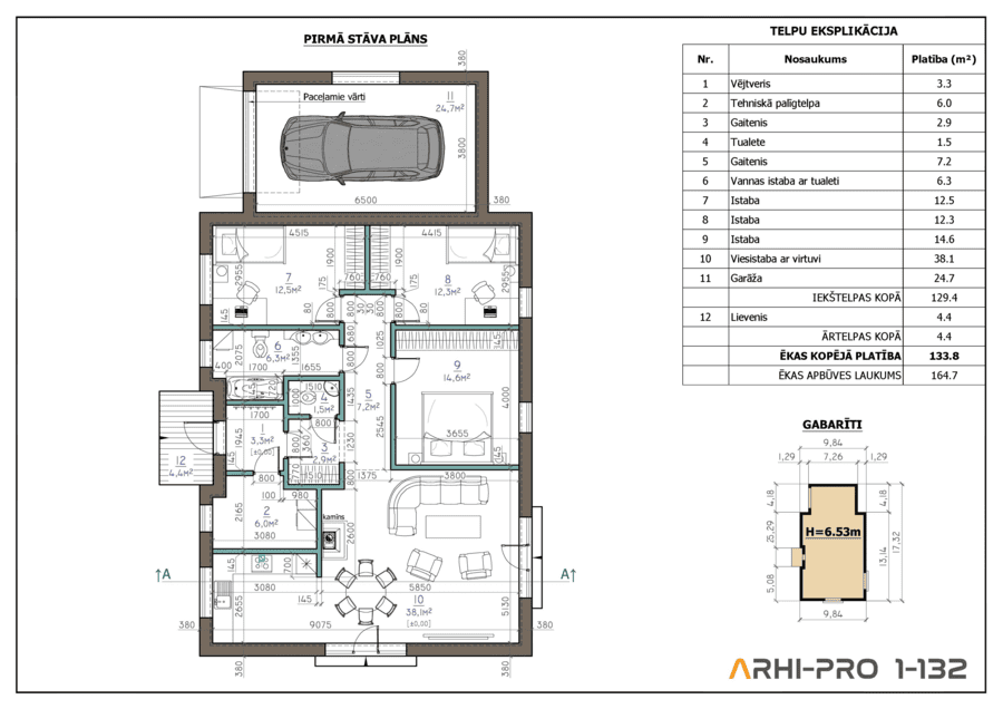 Guļamistabas: 3 Platība: 132 m² Garāža: ir