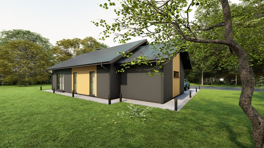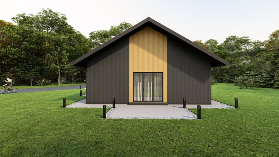 • Ēkas ārsienas: koka statņu karkass, aizpildīts ar minerālvati, ārējā apdare no šķiedrcementa dēļiem.