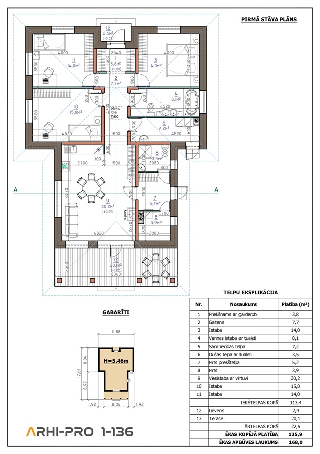Guļamistabas: 3 Platība: 136 m² Garāža: nav