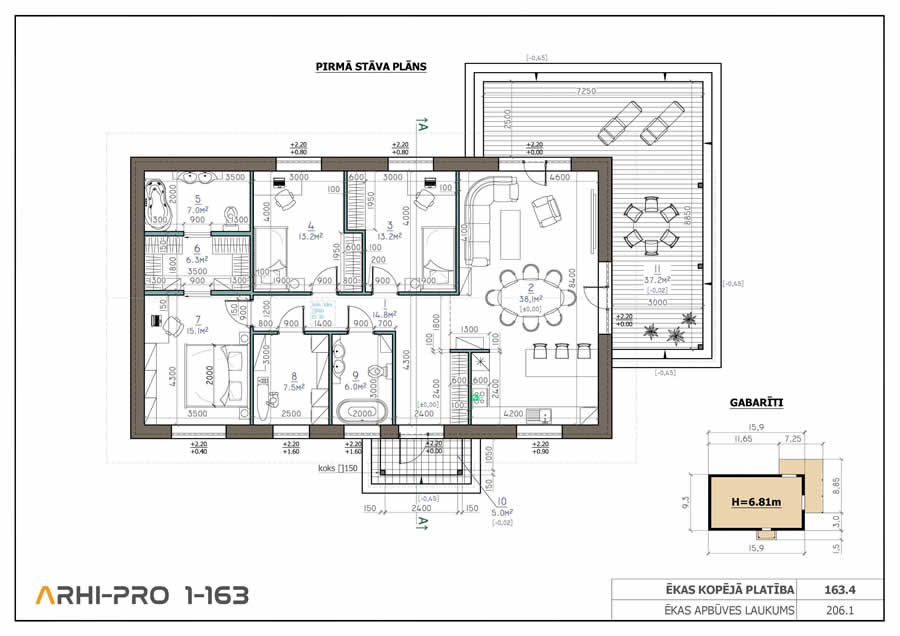 Guļamistabas: 3 Platība: 163 m² Garāža: nav