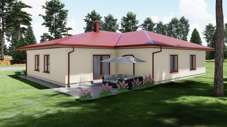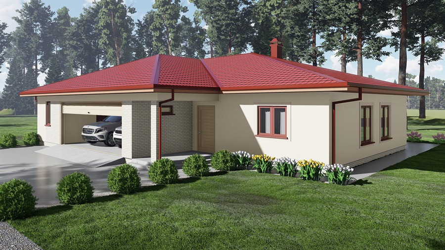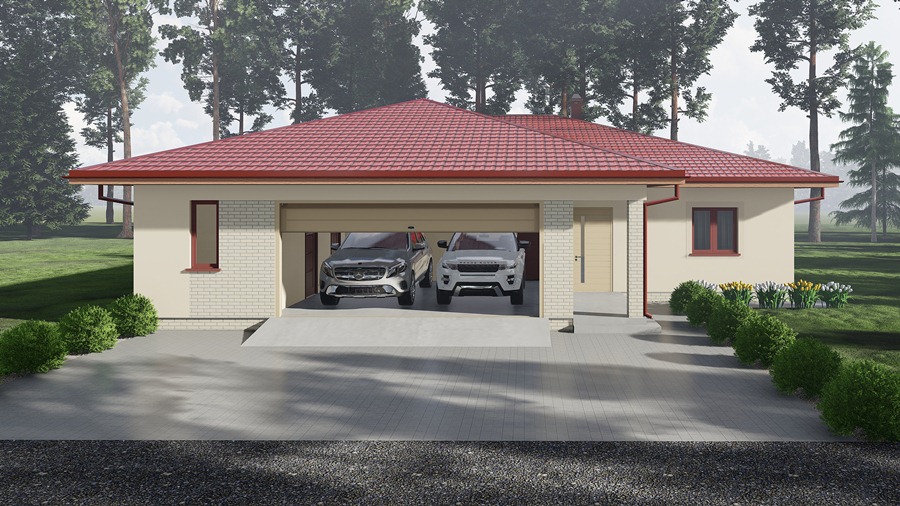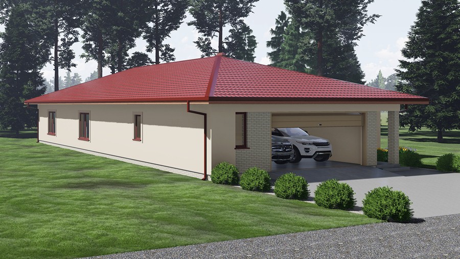Plaša vienstāvīga ģimenes māja ar garāžu divām automašīnām. Mājā ir ieplānota plaša viesistaba apvienota ar virtuvi. Pārējās telpas - trīs guļamistabas, vannas istaba ar tualeti, rezerves/viesu tualete un saimniecības/katlu telpa. Saimnieku guļamistabā paredzēta atsevišķa vannas istaba.