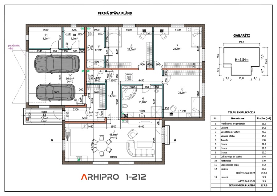 Iekštelpu platība – 212,0m²