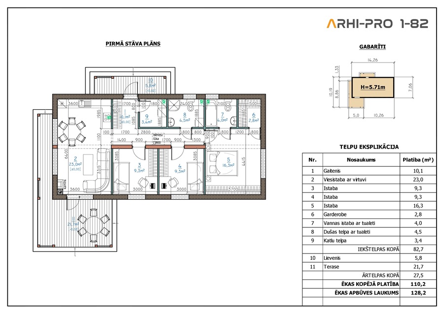 Norādītajā tipveida projekta cenā ir iekļauta būvprojekta dokumentācija, kas sevī ietver ARHITEKTŪRAS (AR) sadaļu un BŪVKONSTRUKCIJU (BK) sadaļu. Papildus tam būs nepieciešams izstrādāt ĢENERĀLPLĀNU (ĢP) jeb piesaistīt māju pie zemes gabala, kas ir individuāls pakalpojums katram pasūtījumam. Jāņem vērā arī saistītie izdevumi ar inženiertehnisko izpēti zemes gabalam (topogrāfija, ģeoloģija), iespējamie pieslēgumi centralizētajiem inženierkomunikāciju tīkliem (ELT, UKT, GAT) un citi iespējamie izdevumi, kas katrā īpašumā var būt atšķirīgi. Lai noskaidrotu saistītās izmaksas lūgums sazināties ar arhitektu - tel. 201 44 444