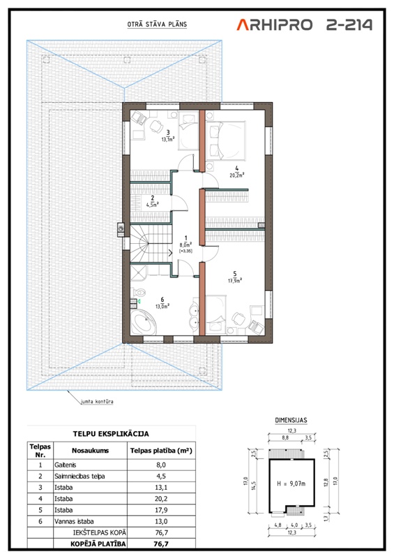 •Jumta konstrukcija – koka karkass, siltināts ar minerālvati.